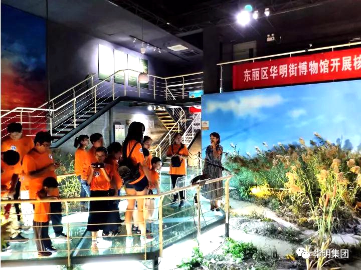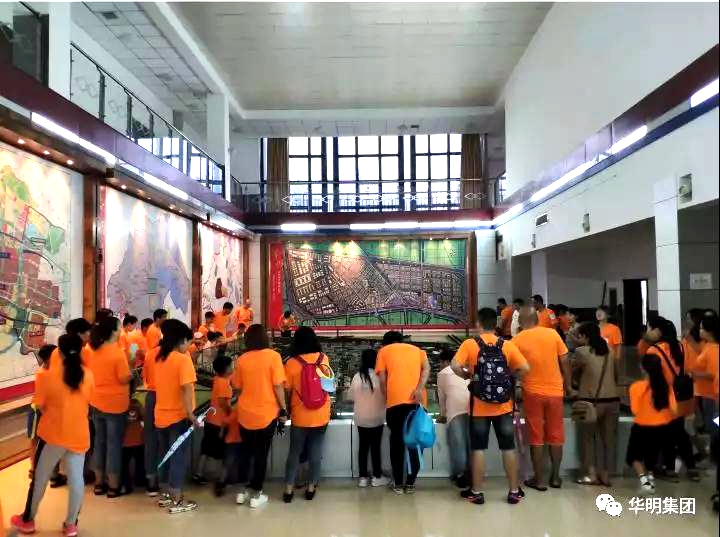第一站到達(dá)世博華明館后,孩子們有序的跟在講解員的身后,認(rèn)真的聽著講解員的講解,時不時問問爸爸媽媽這個是什么那個是什么。當(dāng)聽講解員說華明街原來叫荒草坨鄉(xiāng),后來由于咱們?nèi)A明集團(tuán)輝煌發(fā)展,為地方的發(fā)展做出巨大貢獻(xiàn),因此后來就命名為華明街的時候,一個個帶著童真的笑容,自豪地望著自己的爸爸媽媽。