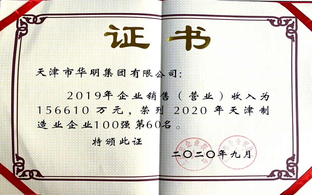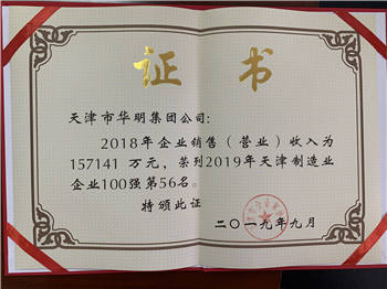 2019年度天津制造業(yè)百強(qiáng)企業(yè)第60名